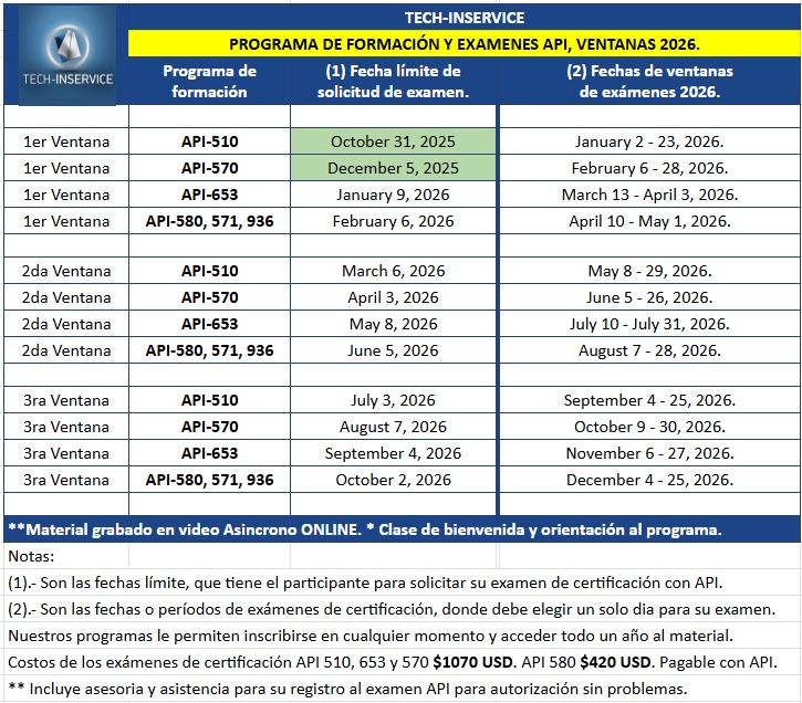 Curso Online E-learning, de formación para el examen de certificación API 653.