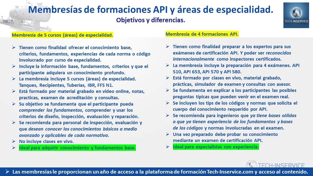 Paquete de 5 cursos API, para la inspección, evaluación, reparación y mitigación de equipos y sistemas de tuberías.